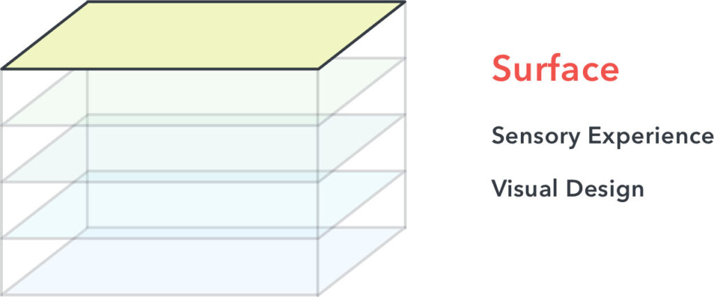 顾名思义,该层致力于获得出色的感官体验和视觉设计。设计师的目标是通过以一种凝聚力的形象成功传达品牌,产品,价值和功能,与用户建立内在联系。