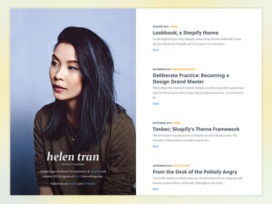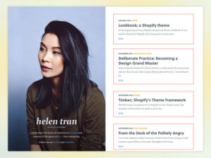 许多人认为空白取决于“味道”。我认为这比这更客观。我们可以有意地使用空白来创建强大的层次结构。让我们看一下HelenTran的网站,以及她如何有意使用空白: